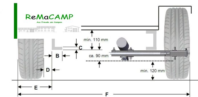 Variante Unteneinbau der klassische Einbau in der Nachrüstung. Für AL-Ko Chassis ohne das Eingeprägte „M“ am Längsrahmen sowie gängie Wettbewerbschassis. AL-KO Mammut wird hier klassisch über eine Querstrebe unterhalb des Rahmens verschraubt. Die Bodenfreiheit verringert sich um die Hähe der Querstrebe (ca. 50 mm). In dieser Einbauvariante ist der Einbau wahlweise vor und hinter der Achse möglich.easydriver Pro 2.0B