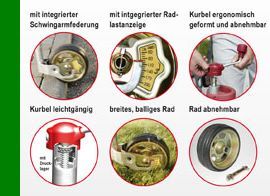 - Max. Belastungs pro Rad: 1000 kg / 1500 kg